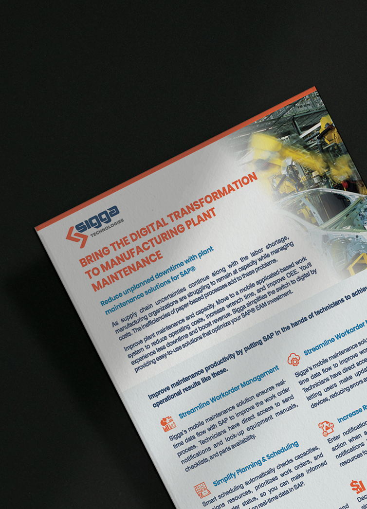 Sigga suite of EAM solutions integrate directly with SAP, operating seamlessly to ensure real-time data synchronization, process consistency, and full alignment with existing asset management workflows, without the need for complex middleware or duplicate data handling.