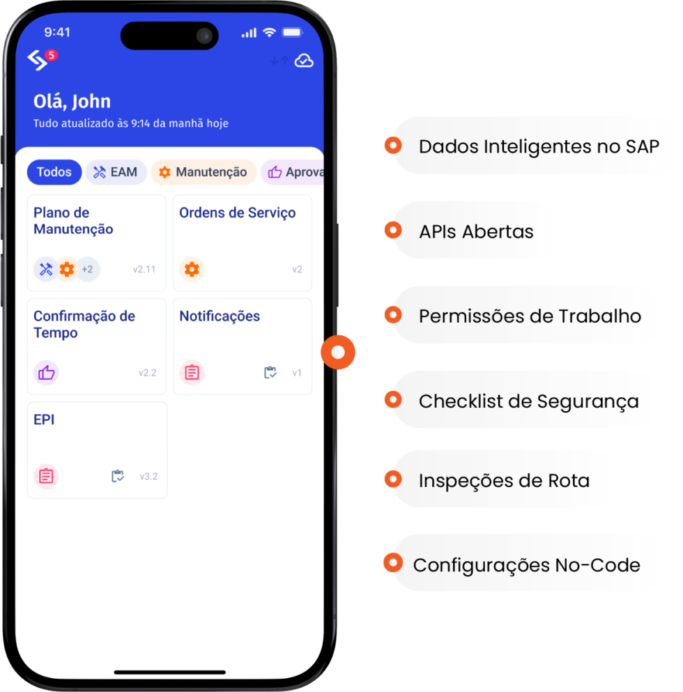 O aplicativo móvel de manutenção da Sigga para SAP é comprovado por mais de 70.000 usuários em indústrias globais. Aumente o tempo de trabalho efetivo (wrench time) e a disponibilidade dos ativos, reduza custos e alcance melhorias significativas nos KPIs da sua operação.